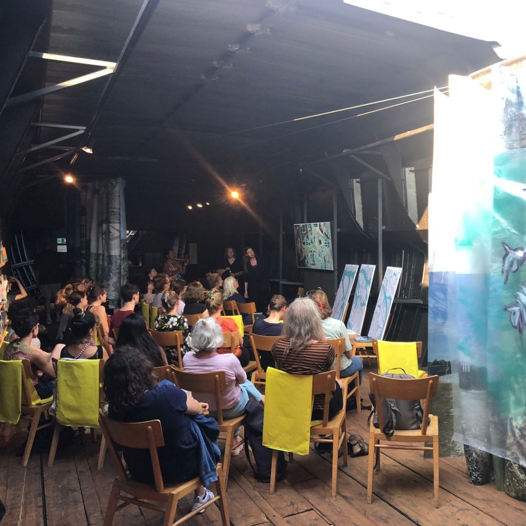 Mit: Felisha Maria Carenage, Luiza Furtado, Anne Meerpohl, Claudia Reiche, Helene von Oldenburg, Muzna Malik, Farrah Mahmood, Julia Frankenberg, Lale Willan, Morena Barra, Martina Morger, Olivia von Pock, Sylvia Schultes, Peter Boue, Dos Pfeil, Lena Buhrmann, Inge Förtsch, Mirjam Walter, Katja Staudacher, Anne Pflug, Imke Staats und Freie Flusszone mit Nana Petzet, Andromeda v. Prondzinski und Katja Lell.