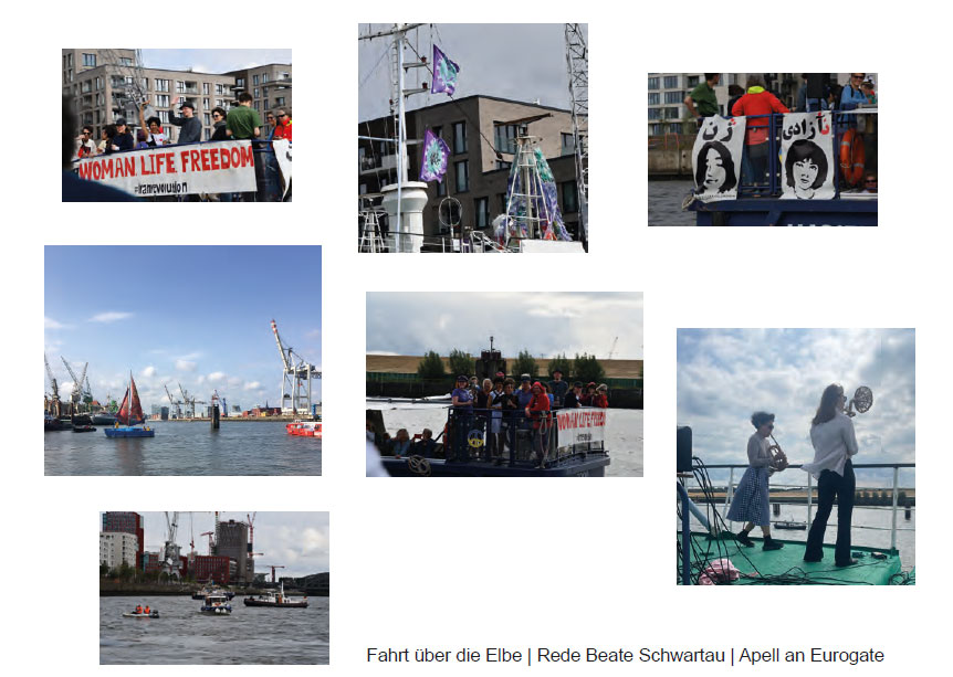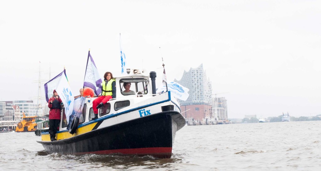 Auf allen sieben Weltmeeren hinweg und natürlich auch in Hamburg haben sich in den letzten Jahren Künstlerinnen, Aktivistinnen und Forscherinnen zu Wort gemeldet. Dennoch werden wir Welt – Frauen uns weiterhin für das Recht auf Teilhabe am Lebensraum Hafen, für die Rückgewinnung des Wassers als öffentlichen Raum, für Seenotrettung, fairen Handel, für die Aufarbeitung kolonialer Strukturen und gegen die Zerstörung maritimer Lebensräume einsetzen.
