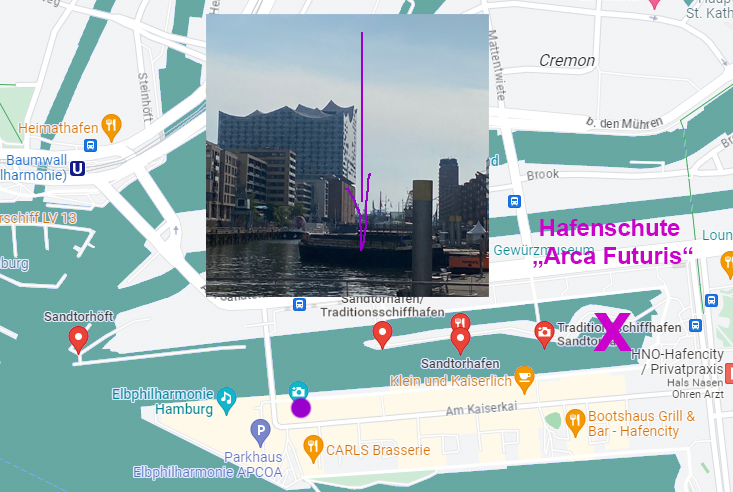 Wo? Hafenschute „Arca Futuris“, Sandtorhafen HafenCity, Ponton 6/7