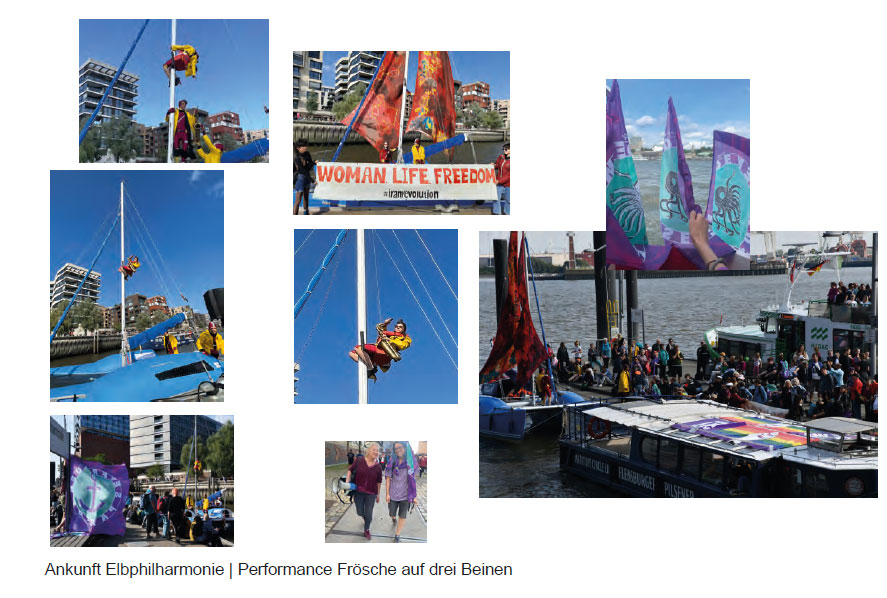 With a parade of ships and boats, we will sail through the port of Hamburg and make women* visible, audible and tangible in the port and at sea! There will be seawomen’s art with swimming performances, seawomen’s radio and much more…